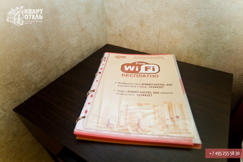 Unlimited wireless high-speed Wi-Fi access to the Internet (you must have a laptop computer to get connected). Telephone in your apartment with unlimited access to Moscow city numbers with the “495” code.