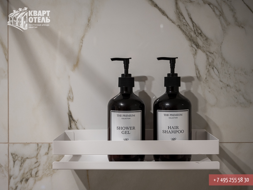 The apartment is equipped with everything you might need for a comfortable stay, including tea, sugar, umbrella, city directory, shampoo, soap and other consumables. A full set of bed linen of high-quality white sateen and white terry towels are also provided