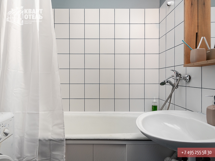 The apartment is equipped with everything you might need for a comfortable stay, including tea, sugar, umbrella, city directory, shampoo, soap and other consumables. A full set of bed linen of high-quality white sateen and white terry towels are also provided