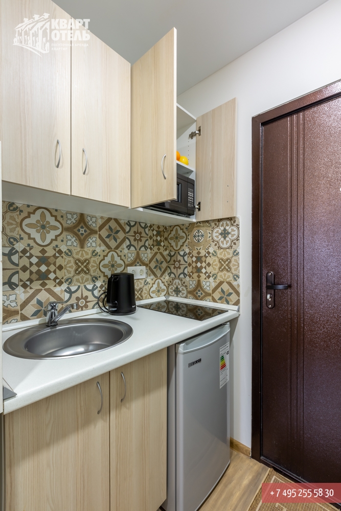 The apartment is equipped with everything you might need for a comfortable stay, including tea, sugar, umbrella, city directory, shampoo, soap and other consumables. A full set of bed linen of high-quality white sateen and white terry towels are also provided