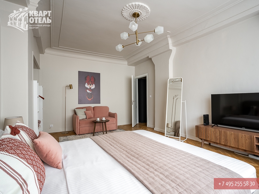 Book this apartment you can in the service of booking by phone +7 (495) 255 58 30 on weekdays from 9 am to 20 pm, on weekends and holidays from 10 to 18 hours. Payment is possible by bank transfer to our bank account, cash in the office or on arrival at the apartment, payment cards VISA, MasterCard, wire transfer in the system Yandex-Money. For more information on booking and payment methods can be obtained from the section Services and Payment and discounts.