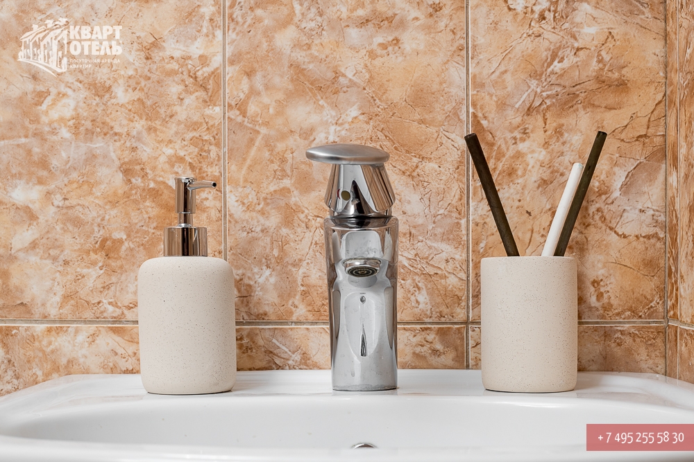 The apartment is equipped with everything you might need for a comfortable stay, including tea, sugar, umbrella, city directory, shampoo, soap and other consumables. A full set of bed linen of high-quality white sateen and white terry towels are also provided