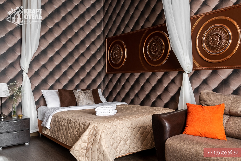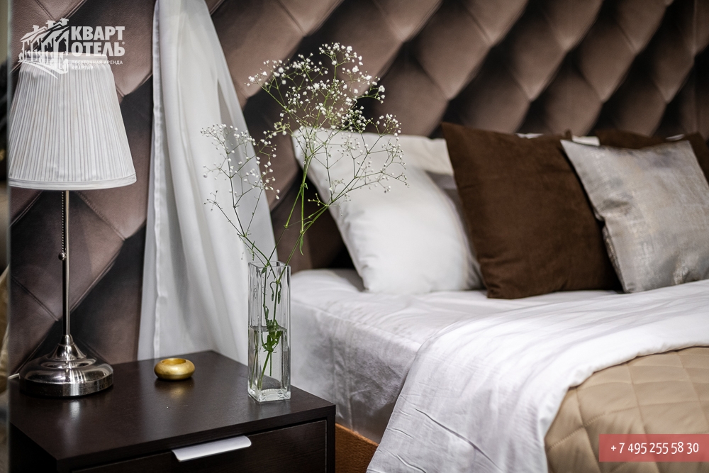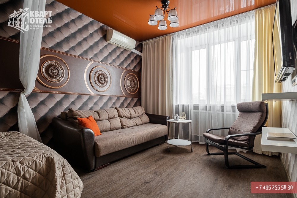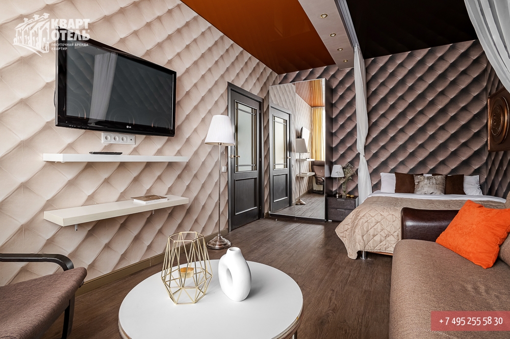 The apartment is for 1-2 persons accommodated on a separate sleeping areas or 2-4 people with co-location on the double ground. The apartment has a double bed and a sofa bed. The organization of extra bed - a sofa bed with a mattress on a person.