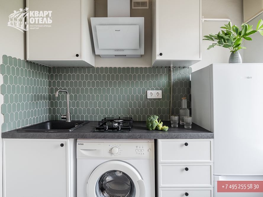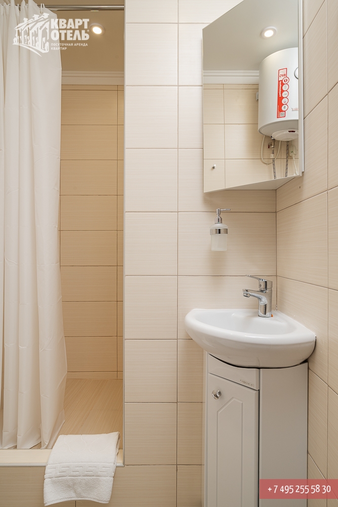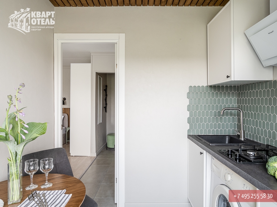 The apartment is equipped with everything you might need for a comfortable stay, including tea, sugar, umbrella, city directory, shampoo, soap and other consumables. A full set of bed linen of high-quality white sateen and white terry towels are also provided