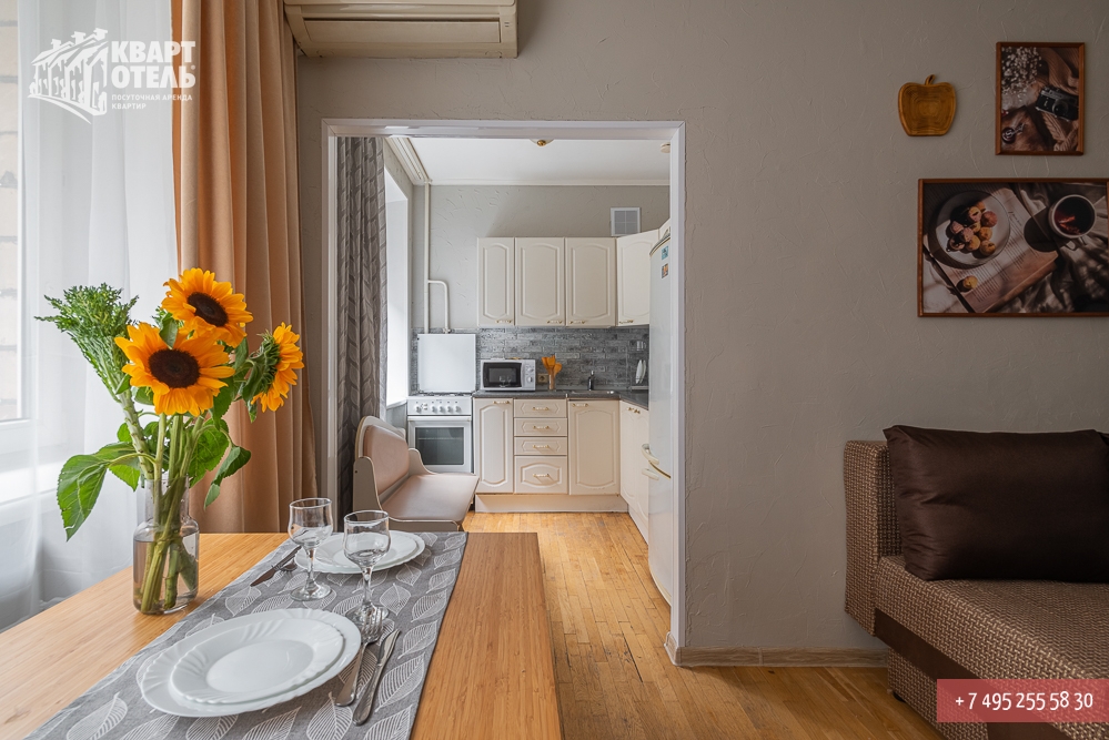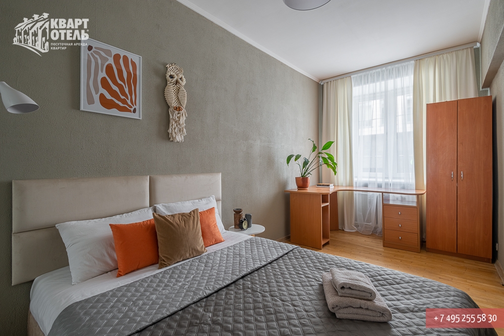 Book this apartment you can in the service of booking by phone +7 (495) 255 58 30 on weekdays from 9 am to 20 pm, on weekends and holidays from 10 to 18 hours. Payment is possible by bank transfer to our bank account, cash in the office or on arrival at the apartment, payment cards VISA, MasterCard, wire transfer in the system Yandex-Money. For more information on booking and payment methods can be obtained from the section Services and Payment and discounts.