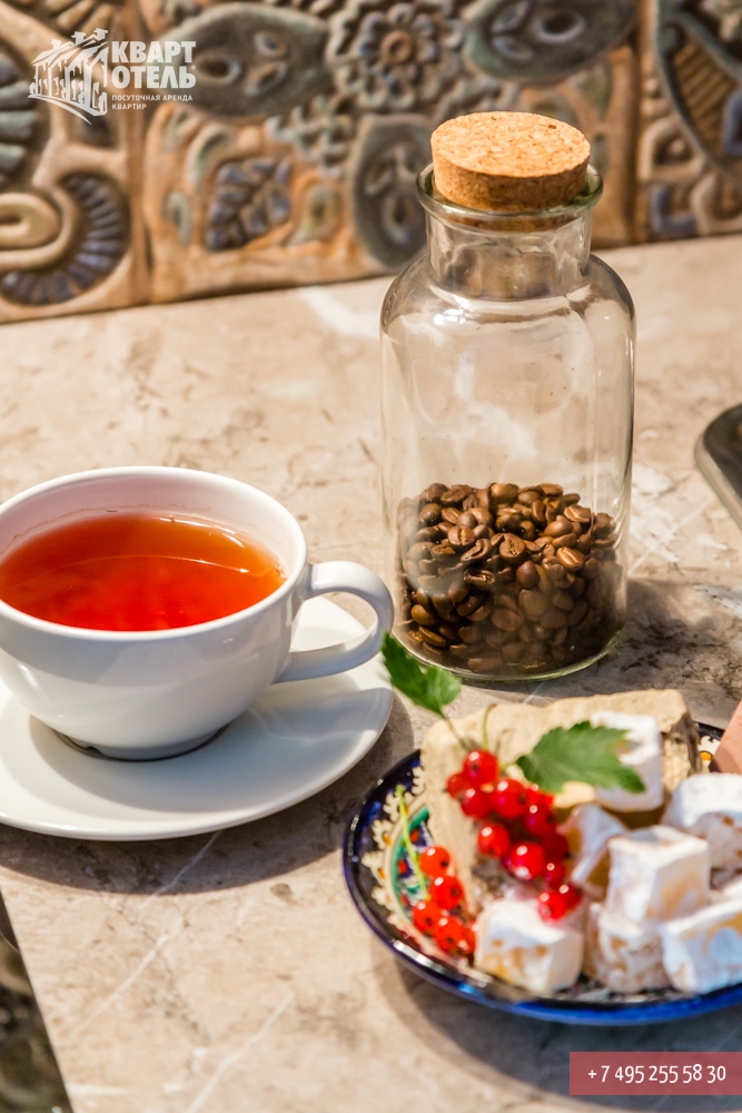 The apartment is equipped with everything you might need for a comfortable stay, including tea, sugar, umbrella, city directory, shampoo, soap and other consumables. A full set of bed linen of high-quality white sateen and white terry towels are also provided