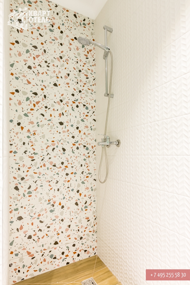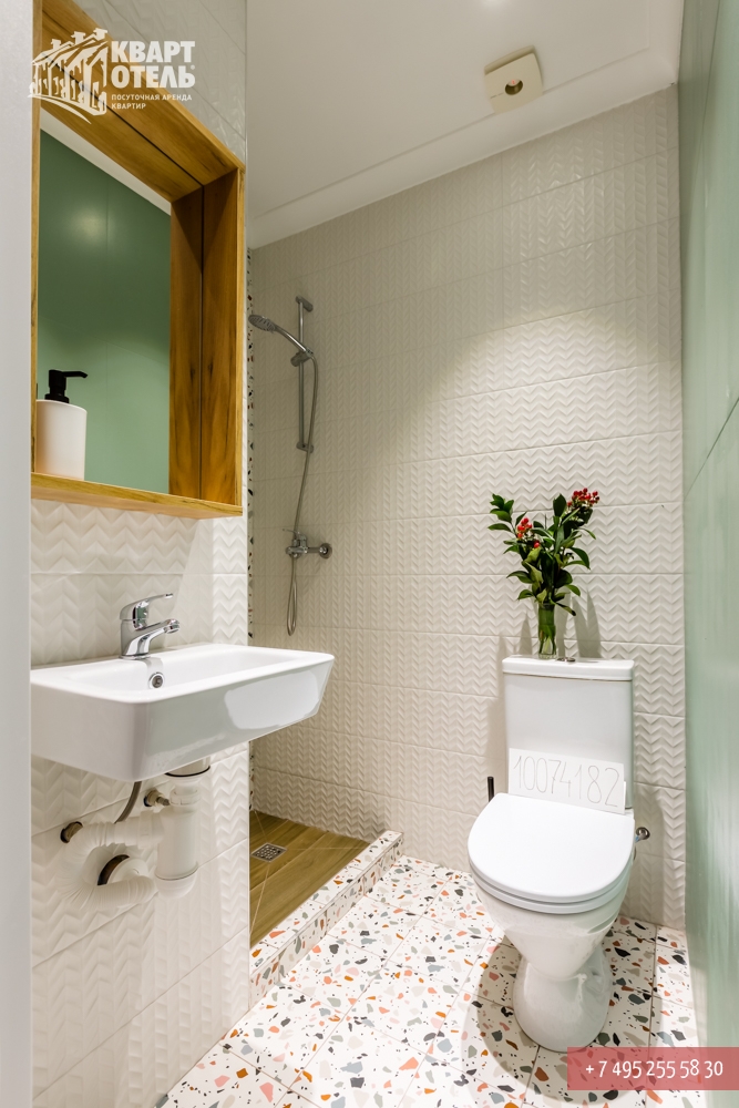 The apartment is equipped with everything you might need for a comfortable stay, including tea, sugar, umbrella, city directory, shampoo, soap and other consumables. A full set of bed linen of high-quality white sateen and white terry towels are also provided