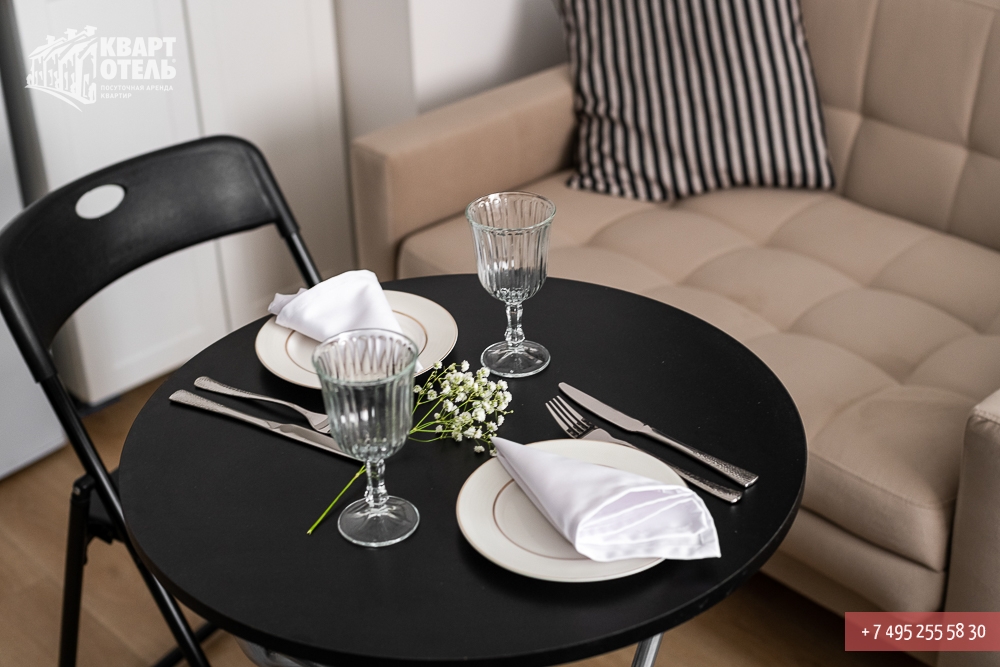 The apartment is equipped with everything you might need for a comfortable stay, including tea, sugar, umbrella, city directory, shampoo, soap and other consumables. A full set of bed linen of high-quality white sateen and white terry towels are also provided