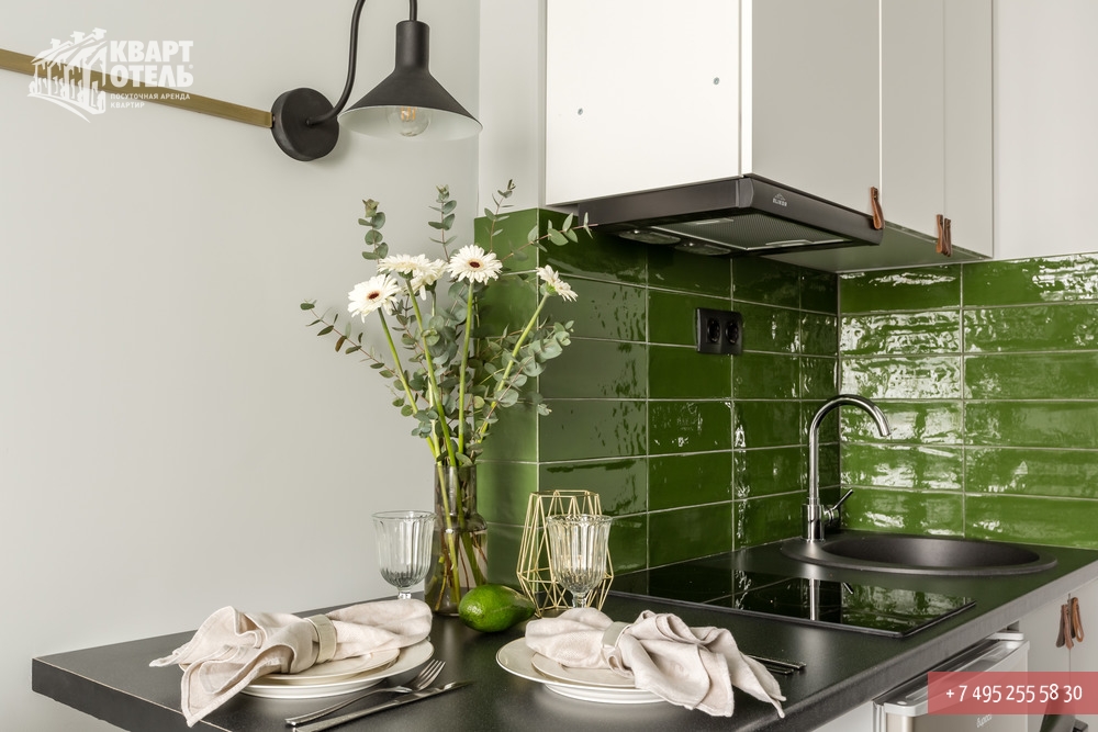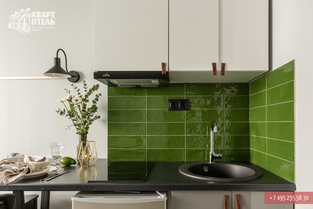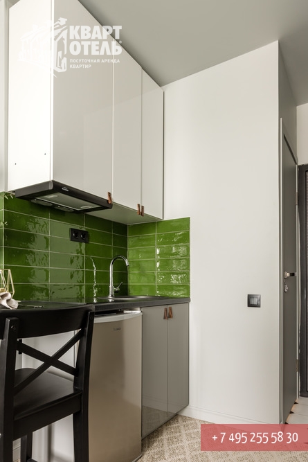 The apartment is equipped with everything you might need for a comfortable stay, including tea, sugar, umbrella, city directory, shampoo, soap and other consumables. A full set of bed linen of high-quality white sateen and white terry towels are also provided