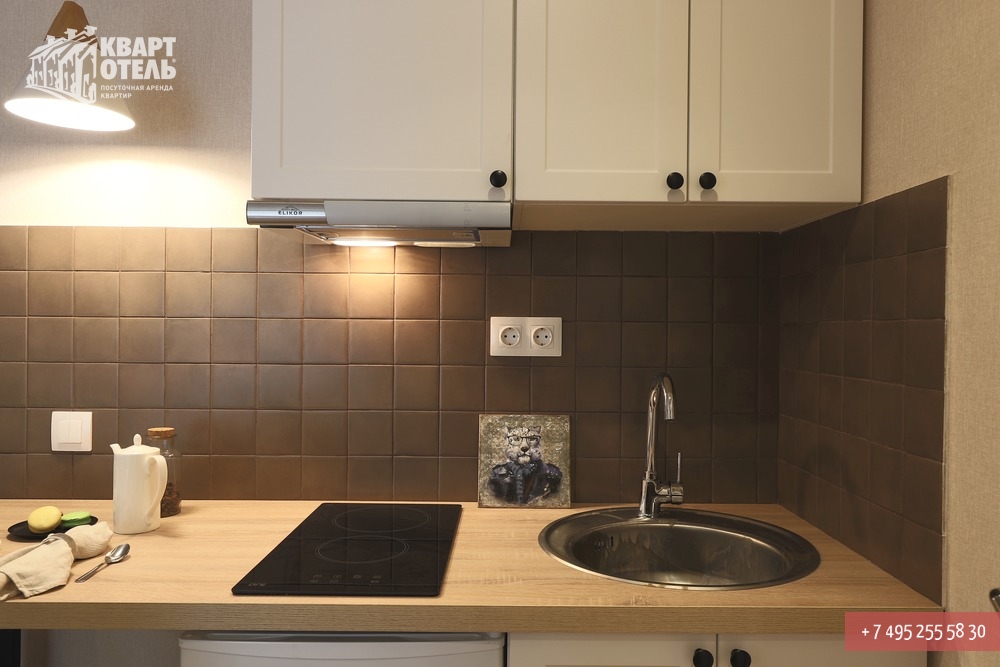 The apartment is equipped with everything you might need for a comfortable stay, including tea, sugar, umbrella, city directory, shampoo, soap and other consumables. A full set of bed linen of high-quality white sateen and white terry towels are also provided
